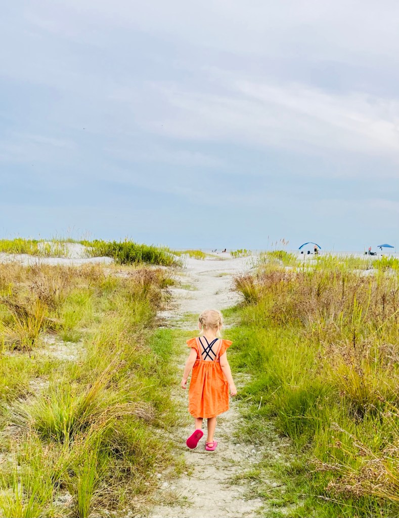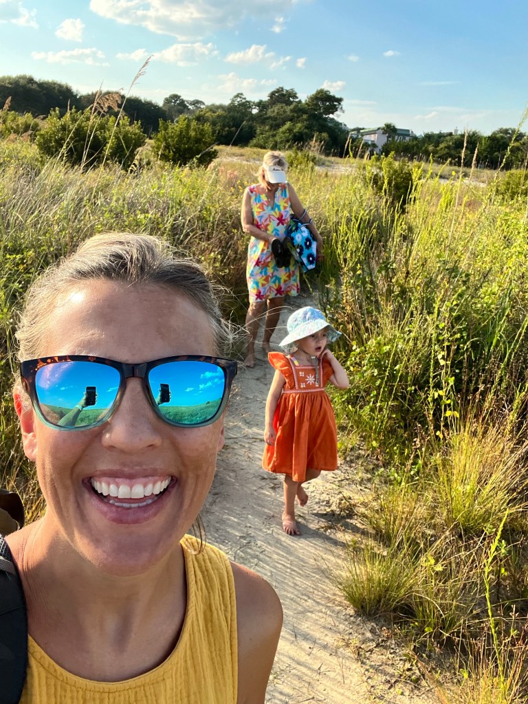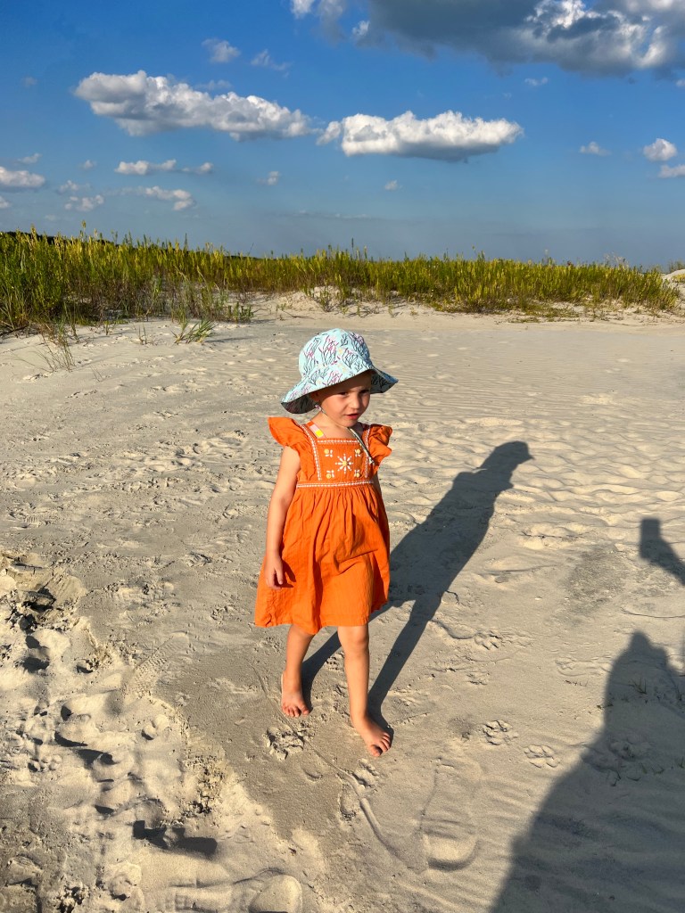 Before the game, fall also means hunting and Walt had a trip to Canada to goose hunt planned for the last 6 months and since I was still technically unemployed, he went North and Olive, DeeDee and I went east to the beach. Unfortunately our trip got cut short by an impending hurricane, but watching Olive see the ocean for the first time was well worth it. It had been nearly 15 years since my toes had felt the sand of an ocean beach so I felt as if I was experiencing it anew with her. A jellyfish also wanted in on giving my toes a memorable experience and left me with a nice bumpy red keepsake.