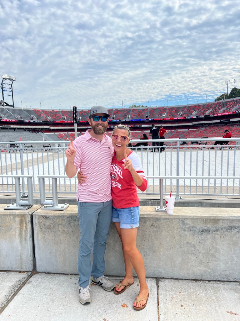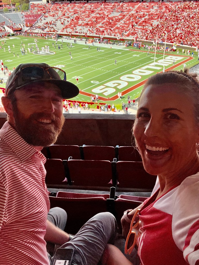 Fall in the south means one thing- Football!! And sweating, but that generally happens year round. Walt has been talking about the grandeur and life changing experience it is to go to a Georgia Bulldogs home football game in Athens -between the hedges- for the entirety of the 13 years we have been together. He would scoff at MSU’s stadium and team and tell me that high schools have bigger stadiums where he was from. I never really grasped the religion that football is until I came south. It started when I saw a high school- high school!!!- football team being escorted by police and sheriffs in multiple buses on the interstate in nowhere Mississippi. It is a big deal around here. So one of the reasons why we were bent and determine to get to Georgia quickly was because I had a date with destiny…and Auburn.
