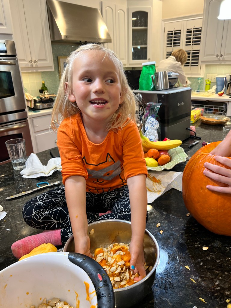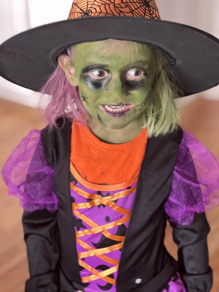 To say Olive was excited for Halloween is the understatement of the century. Her witch costume was extensive and included fake nails, a broom that we created out of pine needles, and of course spooky face paint. She tried a multitude of other costume options but the witch was the winner and she developed a quite convincing cackle.
